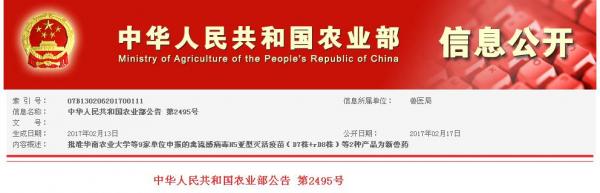 信息來源:中華人民共和國農(nóng)業(yè)部公告 第2495號